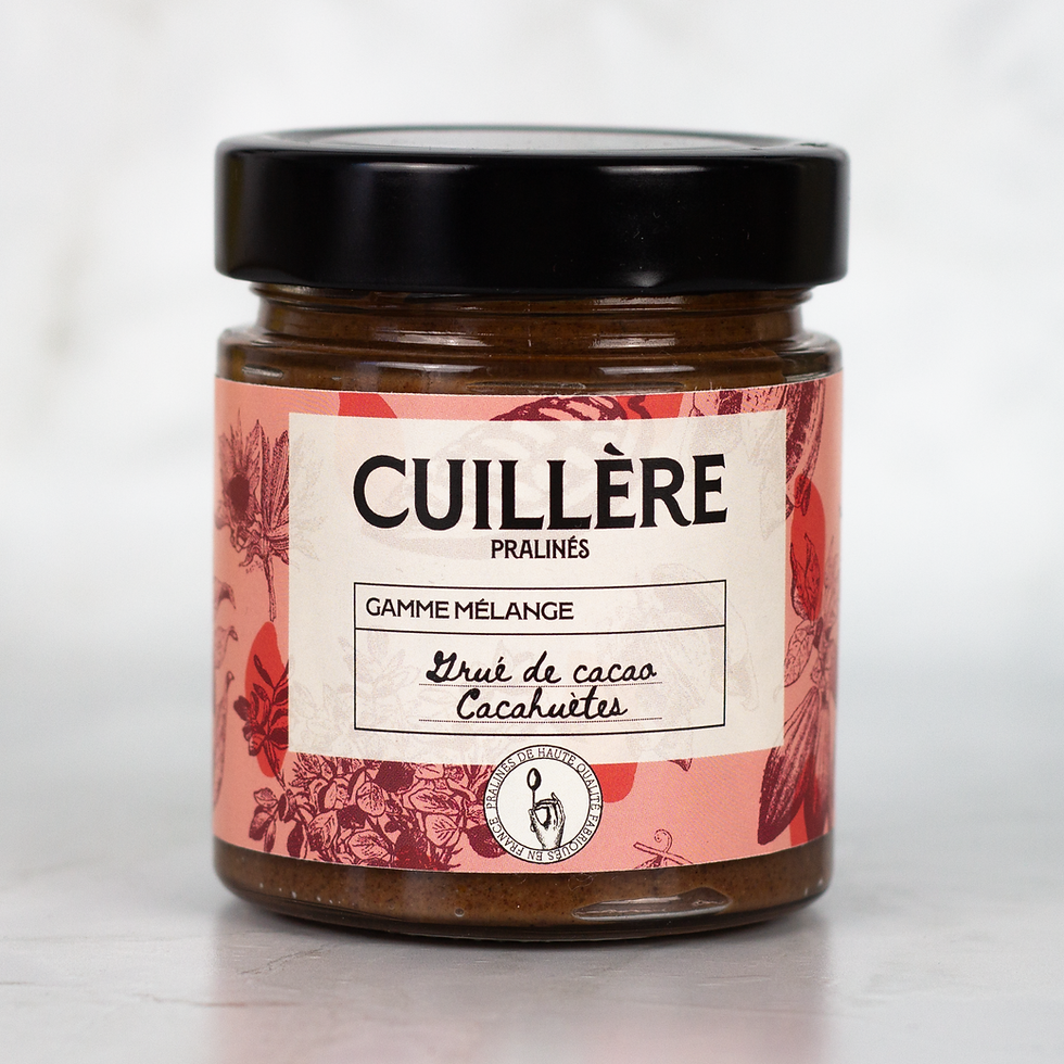 Les pralinés Cuillère : des fruits secs français, torréfiés pour en révéler tout le caractère, caramélisés avec le moins de sucre possible, seuls ou mariés à des matières premières d'exception, et broyés en une pâte fine à laquelle on ajoute une pointe de fleur de sel de Guérande IGP.